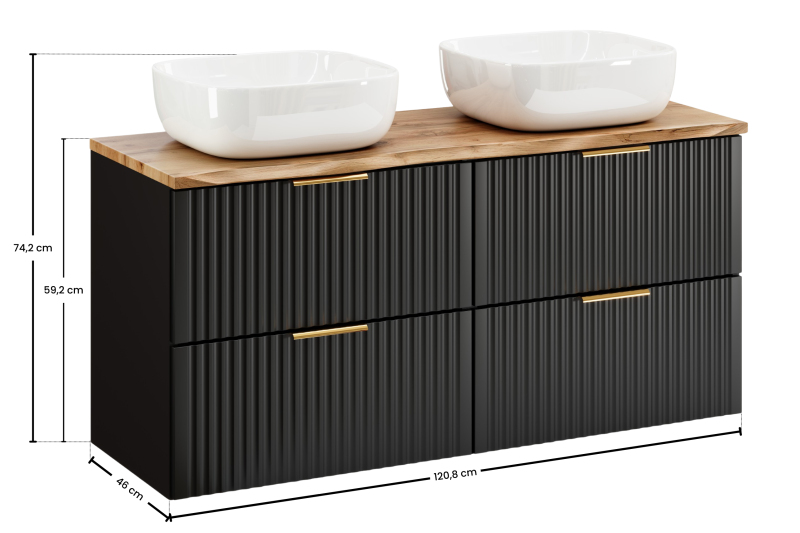 Zestaw meblowy 120cm z blatem i 2 umywalkami nablatowymi Smile
