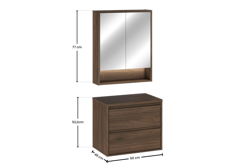 Zestaw meblowy 60cm z blatem i szafką z lustrem