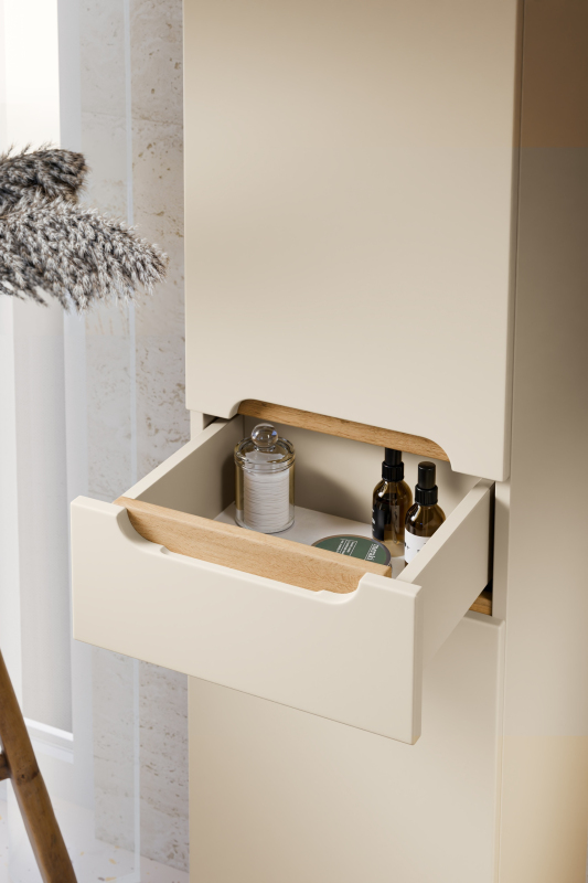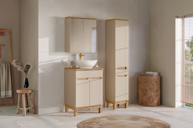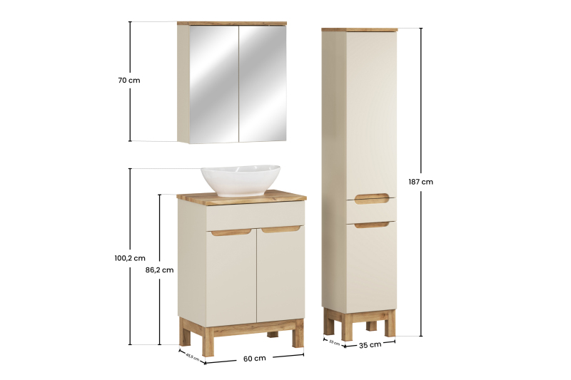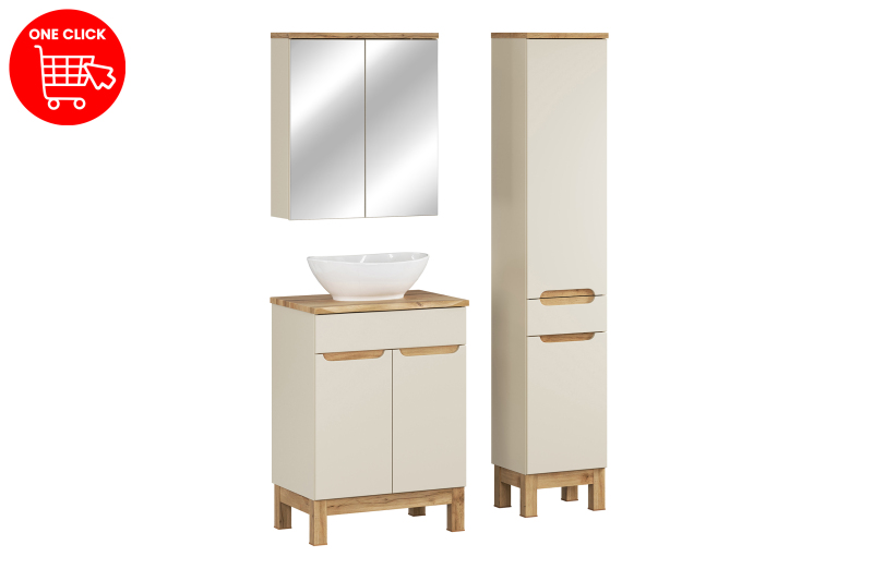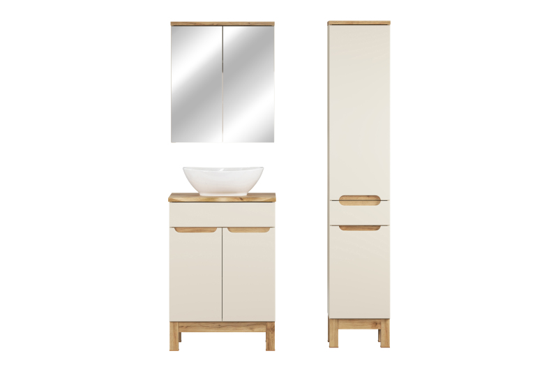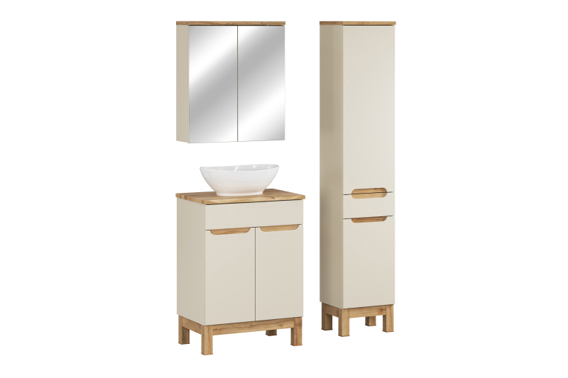 Zestaw meblowy 60cm z blatem, umywalką nablatową Lola, szafką wysoką i szafką z lustrem