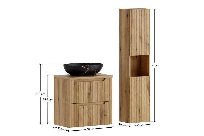 Zestaw meblowy 60cm z blatem, umywalką nablatową Mona i szafką wysoką