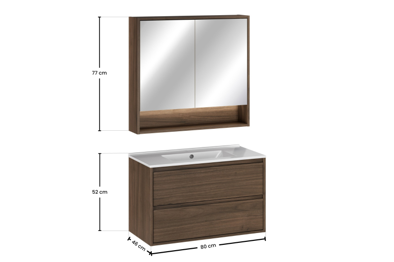Zestaw meblowy 80cm z umywalką meblową Lava i szafką z lustrem