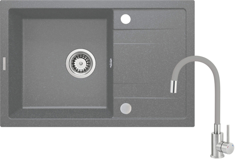 Deante set: granitový dřez, šedá metalíza + dřezová baterie, ocel-šedá + přís. ZRCPS113