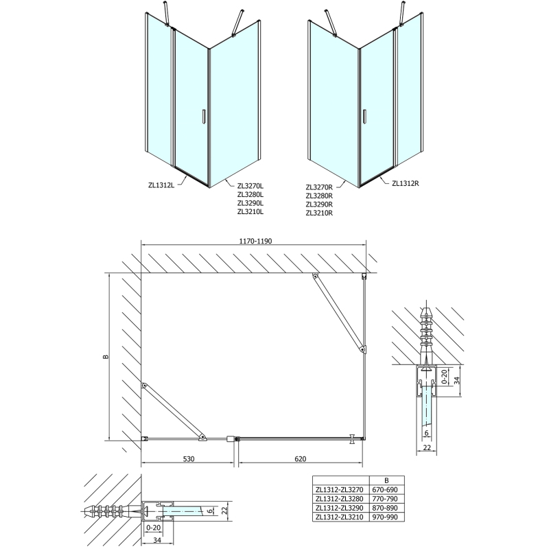 ZOOM obdélníkový sprchový kout 1200x1000mm L/P varianta ZL1312ZL3210