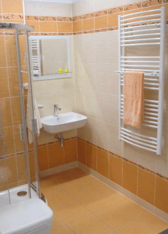 Obdélníkové zrcadlo s poličkou o rozměru 60x55 cm. Orientace zrcadla na šířku.