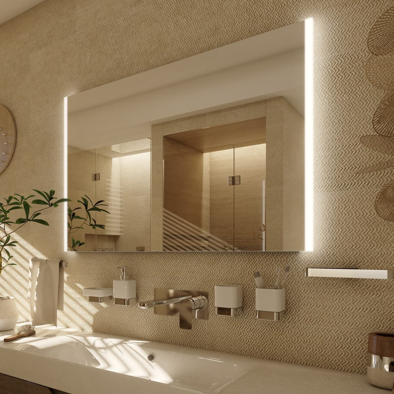 Koupelnové podsvícené LED zrcadlo. Výkon 21 W, teplota chromatičnosti 6000 K. 1512 Lumen.