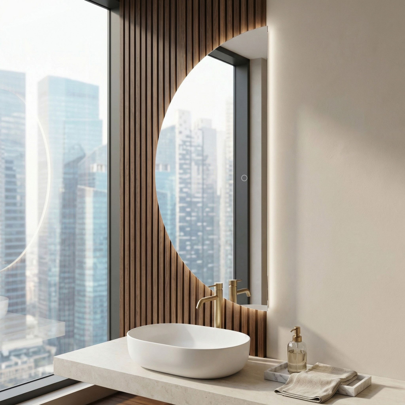 Oceňte eleganci a modernost ve své koupelně díky našemu polokruhovému LED nástěnnému zrcadlu Rea 120×60 cm. Je to ideální kombinace neotřelého stylu a funkčnosti, která nadchne každého uživatele. Toto asymetrické koupelnové zrcadlo, vyrobené z kvalitních materiálů, nejen opticky zvětší prostor, ale také zajistí osvětlení nezbytné pro každodenní rutinu.Unikátní polokruhový tvar narušuje koupelnovou rutinu a umožňuje vytvořit originální moderní aranžmá na stěně.LED osvětlení s neutrální barvou světla zaručuje přirozené podání barev.Intuitivní dotykové tlačítko umožňuje hygienické a rychlé ovládání světla jediným jemným dotykem.Možnost stmívání umožňuje plynulou regulaci jasu, díky čemuž snadno vytvoříte relaxační atmosféru při večerní koupeli.Praktický kabel se zástrčkou zajišťuje snadnou instalaci a okamžitou připravenost k použití bez zásahu do domácí elektroinstalace.Koupelnové LED zrcadlo Rea je ideální volbou pro ty, kteří oceňují každodenní komfort a moderní design. Díky pevné konstrukci a úsporné technologii si můžete být jisti, že vám bude sloužit po mnoho let.
