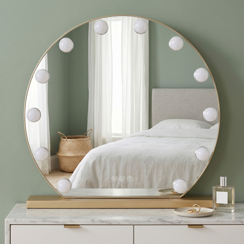Oceňte profesionalitu a filmový lesk ve vlastním domě s Kulatým zrcadlem LED Hollywood od REA o průměru 50 cm. Je to jedinečné spojení kultovního designu s moderní technologií osvětlení, které promění obyčejný toaletní stolek v profesionální vizážistické stanoviště. Vyrobeno s důrazem na detail, poskytuje ideální podmínky pro každodenní péči a zaručuje přesnost a pohodlí každý den.Kulatá plocha o průměru 50 cm – elegantní kruhový tvar zrcadla dokonale zapadá do moderních i klasických aranžmá toaletních stolků a poskytuje optimální zorné pole při líčení.Regulace barvy světla (3 režimy) – možnost změny barvy osvětlení (teplá, neutrální, studená) umožňuje přizpůsobit jas denní době nebo typu prováděných úkonů, což usnadňuje dosažení perfektního výsledku.Kultovní design s 12 LED žárovkami – charakteristické ozdobné světelné body rozmístěné kolem plochy dodávají interiéru luxusní charakter a činí ze zrcadla centrální dekorativní prvek.Funkce stmívání a rozjasňování – integrovaný stmívač umožňuje plynulou regulaci intenzity světla, což chrání zrak před únavou a umožňuje vytvořit v místnosti správnou náladu.Stabilní základna a možnost montáže – univerzální konstrukce umožňuje bezpečné postavení zrcadla na desku pomocí přiložené nožky nebo stabilní zavěšení na stěnu, což dává plnou svobodu při zařizování.Intuitivní dotykové ovládání – elegantní tlačítka umístěná přímo na ploše zrcadla (M – změna barvy, ON/OFF – vypínač, P – regulace jasu) zajišťují jednoduchou a pohodlnou obsluhu.Stabilní síťové napájení – připojení přímo do zásuvky pomocí zástrčky zajišťuje konstantní, silný paprsek světla bez rizika náhlého zhasnutí osvětlení během práce.Kulaté zrcadlo LED Hollywood 50 cm je nabídka pro lidi, kteří oceňují designové doplňky spojující estetiku s nejvyšší užitnou hodnotou. Jeho efektní forma se dokonale hodí do luxusních interiérů typu glamour, moderních ložnic i profesionálních šaten. Výběrem tohoto modelu od REA získáte prvek vybavení, který reálně zvyšuje standard každodenní péče a dodává interiéru prestižní nádech.