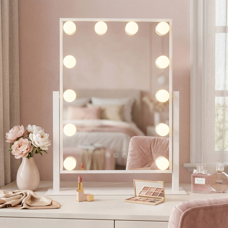 Objevte novou kvalitu každodenní péče a líčení díky kosmetickému LED zrcadlu Rea Style White 30×40. Toto jedinečné spojení moderní technologie s klasickým designem typu Hollywood promění váš stolek v profesionální vizážistické stanoviště. Zrcadlo od REA, vyrobené z nejkvalitnějších materiálů, zajišťuje nejen ideální osvětlení obličeje, ale tvoří také elegantní dekorativní prvek každé ložnice či koupelny.Osvětlení 12 LED body – žárovky rozmístěné kolem plochy zaručují rovnoměrné osvětlení obličeje bez stínů, což je klíčové pro precizní líčení.Přídavné zrcátko s 5násobným zoomem – menší kulaté zvětšovací zrcátko umožňuje vidět nejmenší detaily během složitých kosmetických úkonů.Možnost naklonění plochy – pohyblivá konstrukce umožňuje libovolnou regulaci úhlu sklonu, díky čemuž ideálně přizpůsobíte výhled svému postoji a výšce desky.Intuitivní dotykové ovládání – tlačítka umístěná na ploše umožňují okamžitou změnu barvy světla a regulaci jeho intenzity jedním dotykem prstu.Tři barvy světla na výběr – možnost změny barvy (teplá, neutrální, studená) umožňuje zkontrolovać makiaž v různých světelných podmínkách, od denního po večerní.Stabilní bílá základna – solidní konstrukce v univerzální barvě zajišťuje bezpečnost používání a dokonale ladí s moderními interiéry.Napájecí adaptér v balení – kompletní vybavení umožňuje okamžité zapojení zařízení do sítě a využívání všech jeho funkcí hned po vybalení z krabice. Kosmetické LED zrcadlo Rea Style White 30×40 je ideální volbou pro lidi, kteří si cení pohodlí, funkčnosti a profesionálního přístupu k péči. Perfektní povrchová úprava v bílé barvě a svislá orientace zajišťují, že produkt zabírá optimální množství místa a zároveň nabízí velkou odrazovou plochu. Výběrem tohoto modelu od REA investujete do odolnosti a spolehlivosti, které vás budou provázet při každé ranní přípravě po dlouhá léta.
