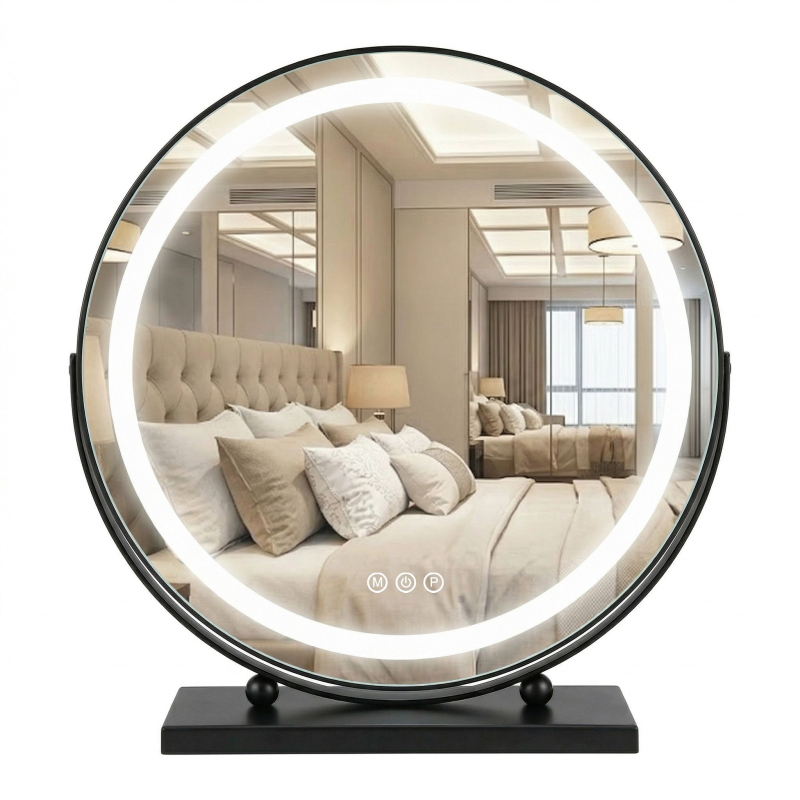 Oceňte profesionalitu a moderní design ve svém beauty koutku díky kosmetickému LED zrcadlu Make-Up Black o průměru 50 cm. Je to ideální spojení stylu a funkčnosti, které nadchne každého, kdo hledá perfektní osvětlení pro každodenní péči a líčení. Zrcadlo vyrobené z nejlepších materiálů v hlubokém černém provedení nejen podtrhne vzhled vašeho toaletního stolku, ale zajistí také spolehlivost a komfort používání každý den.Pohyblivá konstrukce plochy – možnost svobodné regulace úhlu sklonu na stabilní nožce umožňuje ideálně přizpůsobit polohu zrcadla vašim potřebám.Tři barvy podsvícení – výběr mezi teplým, studeným a neutrálním odstínem umožňuje perfektní sladění světla s denní dobou a typem prováděného líčení.Funkcja stmívání a rozjasňování – inteligentní regulace intenzity jasu umožňuje vytvořit optimální podmínky pro práci a zároveň chrání zrak před únavou.Intuitivní dotykové ovládání – tři diskrétní senzory umístěné přímo v ploše skla zajišťují okamžitou a jednoduchou obsluhu všech funkcí jedním dotykem.Speciální napájecí adaptér v balení – stálé síťové napájení zaručuje neměnný výkon svícení LED diod bez nutności používat baterie.Elegantní černé provedení – minimalistické pouzdro a solidní základna v matné černé barvě zajišťují, že zrcadlo dokonale zapadá do moderních a loftových interiérů. Kosmetické LED zrcadlo Make-Up Black je volbou pro lidi, kteří si cení luxusu a moderního designu v pohodlí domova. Perfektní v každém detailu, vyrobené s důrazem na kvalitu a estetiku, bude výraznou ozdobou vašeho interiéru. Díky mobilní konstrukci a pokročilému systému osvětlení si můžete být jisti, že každé líčení proběhne v profesionálních podmínkách.