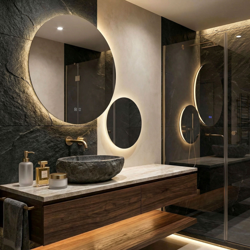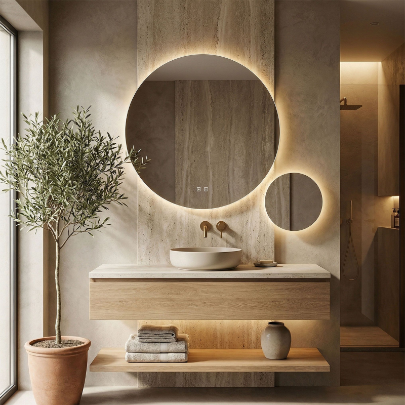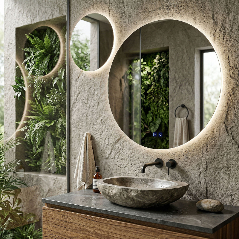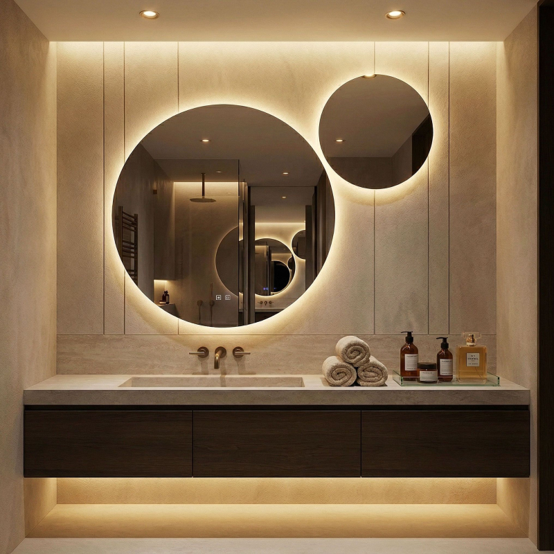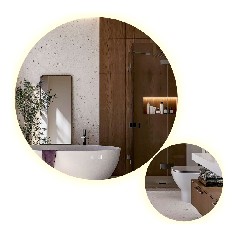 Oceňte eleganci a modernost ve své koupelně díky unikátnímu řešení, jakým je sada dvou kulatých LED koupelnových zrcadel značky REA. Tato inovativní a stylová kombinace umožňuje vytvořit jedinečnou nástěnnou aranžaci, která okouzlí každého uživatele. Podsvícená zrcadla vyrobená z nejkvalitnějších materiálů nejen opticky zvětší prostor, ale také zajistí spolehlivost a dostatek světla při každodenních pečujících rituálech.Dvě zrcadla v sadě – hlavní velké zrcadlo s ovládacím panelem a menší zrcadlo, které můžete volně naaranžovat vedle něj a vytvořit tak unikátní kompozici přizpůsobenou vašemu interiéru.3D efekt a lehkost prostoru – speciální konstrukce se skrytým kruhem a LED pásky způsobuje, že zrcadla nepřiléhají přímo ke stěně, a dodává koupelně moderní trojrozměrný vzhled.Tři barvy světla na výběr – plynulá změna mezi teplým, neutrálním a studeným odstínem umožňuje dokonale přizpůsobit osvětlení obou zrcadel denní době nebo vašim preferencím.Intuitivní dotykové ovládání – tlačítko na velké ploše umožňuje pohodlné zapnutí, volbu barvy světla i plynulé ztmavení a zesvětlení intenzity svícení.Praktická funkce Anti-Fog – speciální druhé tlačítko na hlavním zrcadle spouští topnou podložku, která zabraňuje zamlžování povrchu i během horkých koupelí a zaručuje křišťálově čistý odraz.Pohodlné napájení – sada je vybavena klasickým kabelem se zástrčkou do zásuvky, což zajišťuje rychlou a bezproblémovou instalaci bez nutnosti upravovat domácí elektroinstalaci. Moderní sada podsvícených zrcadel REA je volbou pro ty, kteří si cení maximálního komfortu a neotřelého designu. Dokonalé v každém detailu, elegantní zpracování a mimořádná funkčnost budou skutečnou ozdobou vaší koupelny. Díky pevné konstrukci, snadné montáži a záruce kvality si můžete být jisti, že vám budou sloužit dlouhá léta a každý den poskytovat pohodlí.