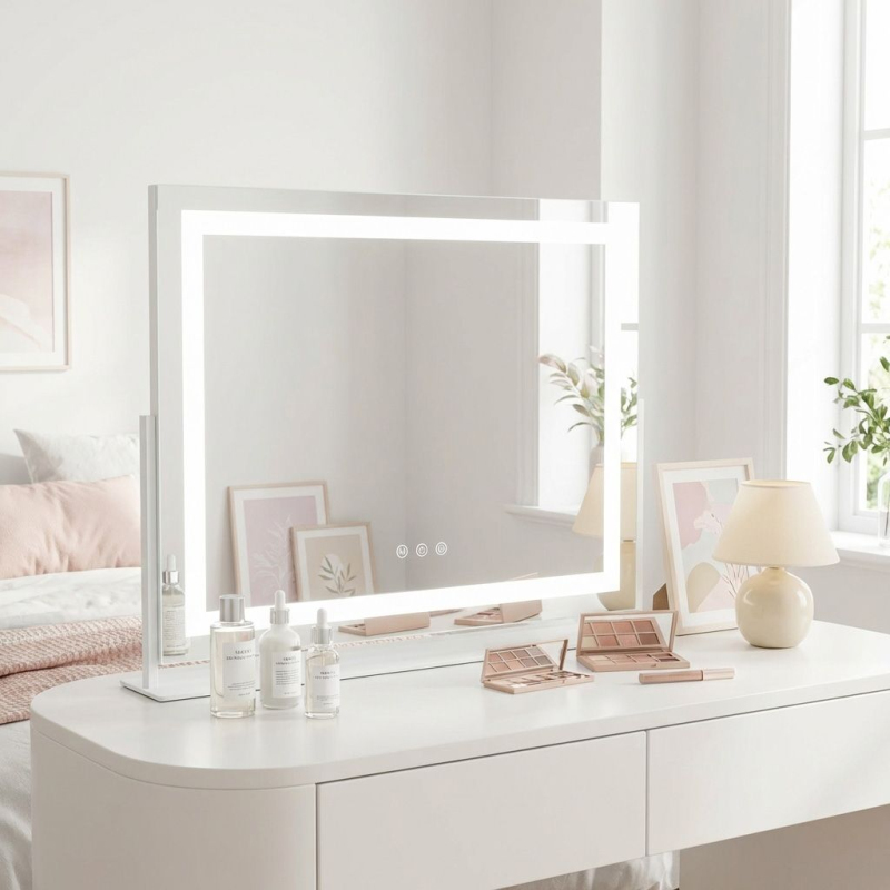 Oceňte profesionalitu a moderní design ve svém beauty koutku díky kosmetickému LED zrcadlu Studio White o rozměrech 58×45 cm. Je to ideální spojení stylu a funkčnosti, které nadchne každého uživatele hledajícího perfektní osvětlení pro líčení. Zrcadlo vyrobené z nejlepších materiálů nejen podtrhne vzhled vašeho toaletního stolku, ale zajistí také spolehlivost a odolnost na léta.Moderní LED pásek – integrovaný světelný rám zajišťuje rovnoměrné rozptýlení jasu po celém obličeji, což eliminuje stíny a usnadňuje precizní nanášení kosmetiky.Tři barvy světla – možnost výběru mezi teplým, neutrálním a chladným odstínem umožňuje ideálně přizpůsobit osvětlenie denní době a zkontrolovat vzhled líčení v různých podmínkách.Funkce stmívání a rozjasňování – plynulá regulace intenzity světla chrání zrak před únavou a umožňuje vytvořit optimální podmínky pro práci.Vestavěný USB vstup – praktický port umožňuje pohodlné nabíjení telefonu nebo jiného příslušenství přímo u zrcadla, což výrazně zvyšuje komfort každodenního používání.Intuitivní dotyková tlačítka – elegantní senzory umístěné v ploše zrcadla zajišťují rychlou a jednoduchou obsluhu všech funkcí jedním dotykem.Stabilní konstrukce a bílé provedení – solidní základna zaručuje bezpečnost a univerzální barevnost způsobuje, že zrcadlo dokonale zapadá do každého moderního aranžmá.Kosmetické LED zrcadlo Rea Studio White je volbou pro lidi, kteří si cení pohodlí a moderního designu v každodenní péči. Perfektní v každém detailu, s funkcí nabíjení přes USB, představuje nepostradatelný nástroj pro každou milovnici vizáže. Díky solidní konstrukci a vysoké kvalitě zpracování od REA si můžete být jisti, že tento model bude těšit vaše oko po dlouhá léta a zajistí luxus a pohodlí každý den.