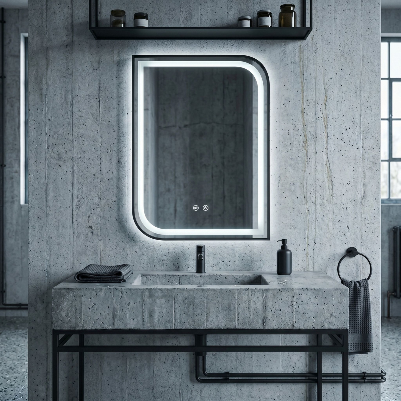 Hledáte výrazný detail, který dodá vaší koupelně moderní loftový charakter? Objevte koupelnové LED zrcadlo Zone 70×50 cm v černé barvě. Tento model kombinuje syrovou eleganci s inteligentními řešeními a vytváří ideální doplněk pro industriální nebo minimalistické interiéry. Unikátní asymetrická linie dělá ze zrcadla originální dekoraci, která upoutá pozornost.Povrchová úprava Černá kartáčovaná – ušlechtilá matná struktura rámu s jemným efektem kartáčování dodává zrcadlu luxusní šmrnc a maskuje otisky prstů či skvrny.Designová linie Zone – unikátní spojení dvou pravých úhlů a dvou jemně zaoblených rohů dodává zrcadlu lehkost a boří schémata klasického designu.Integrované LED osvětlení – světelný pás podél okraje vyzařuje jasné, neutrální světlo, ideální pro ranní péči nebo líčení.Funkce stmívání – integrovaný stmívač umožňuje plynulou změnu intenzity světla od plného výkonu po náladovou záři.Systém Anti-Fog (Proti zamlžování) – díky vyhřívací podložce se na zrcadle neusazuje pára ani po horké koupeli.Intuitivní dotyková tlačítka – dva podsvícené senzory na ploše zajišťují okamžitou reakci a plnou kontrolu nad osvětlením a odmlžováním.Vysoká kvalita provedení – plocha odolná proti korozi a pevný kovový rám zaručují bezchybný vzhled po mnoho let.