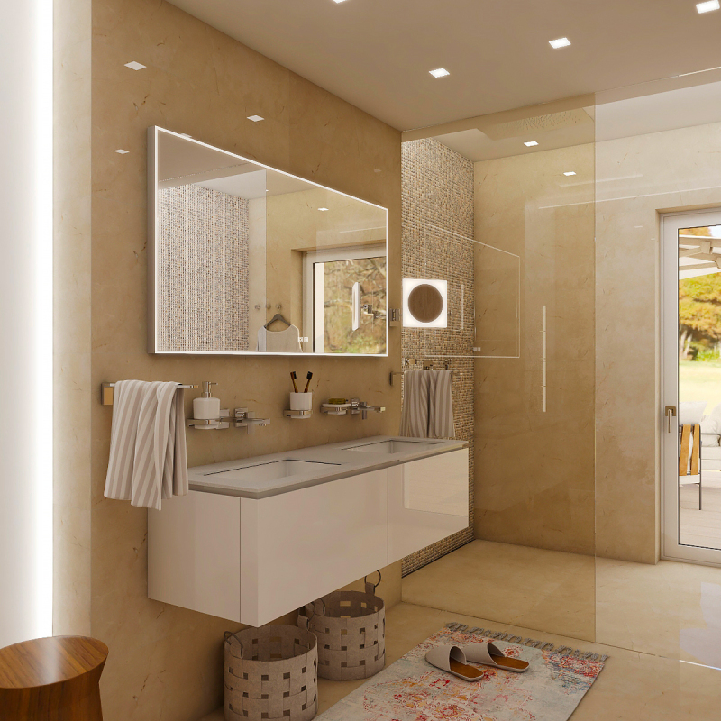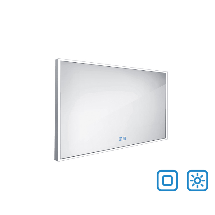 Obdélníkové Zrcadlo s osvětlením o rozměru 120x70 cm. v barvě stříbrná Barevná teplota osvětlení je 3000 - 6500 K (chladnější bílá). S krytím IP44, je chráněno proti stříkající vodě. Orientace zrcadla na šířku.