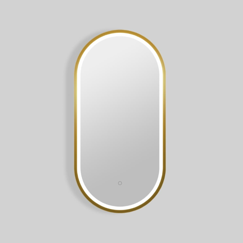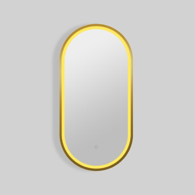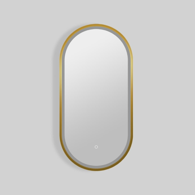 Obdélníkové zrcadlo s LED osvětlením a senzorem, rozměr 40x80 cm, provedení broušené zlato. Barevná teplota osvětlení v rozmezí 2700–6500 K. S krytím IP44, chráněno proti stříkající vodě. Orientace zrcadla na výšku i na šířku.