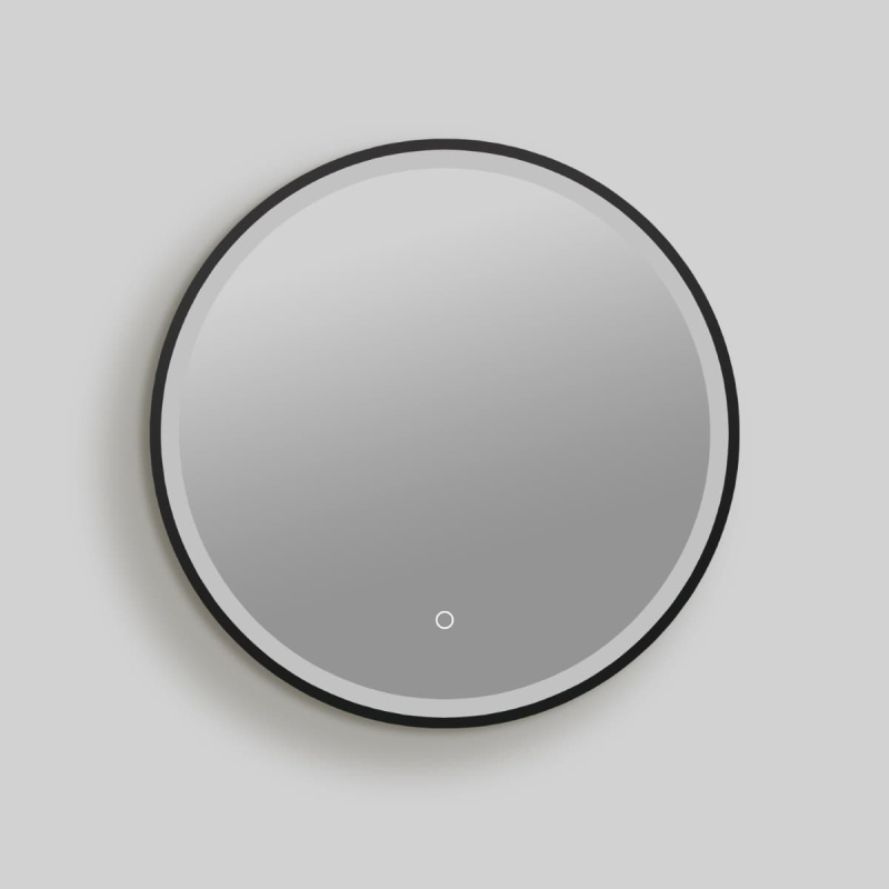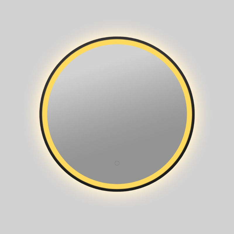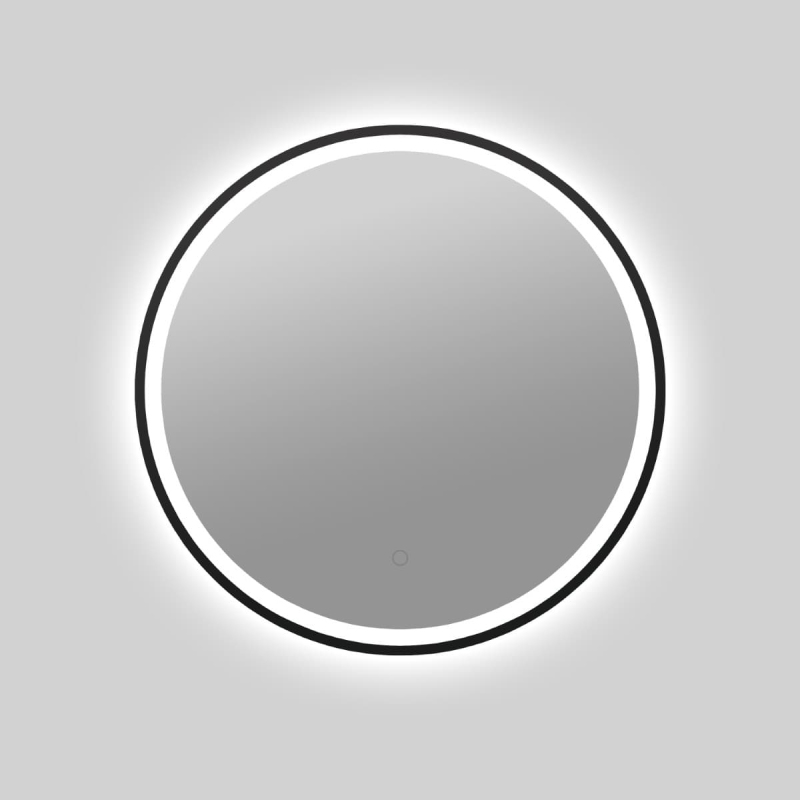 Kulaté zrcadlo s LED osvětlením, podsvícené, se senzorem, průměr 60 cm, černá barva. Barevná teplota osvětlení v rozmezí 2700–6500 K. S krytím IP44, chráněno proti stříkající vodě.