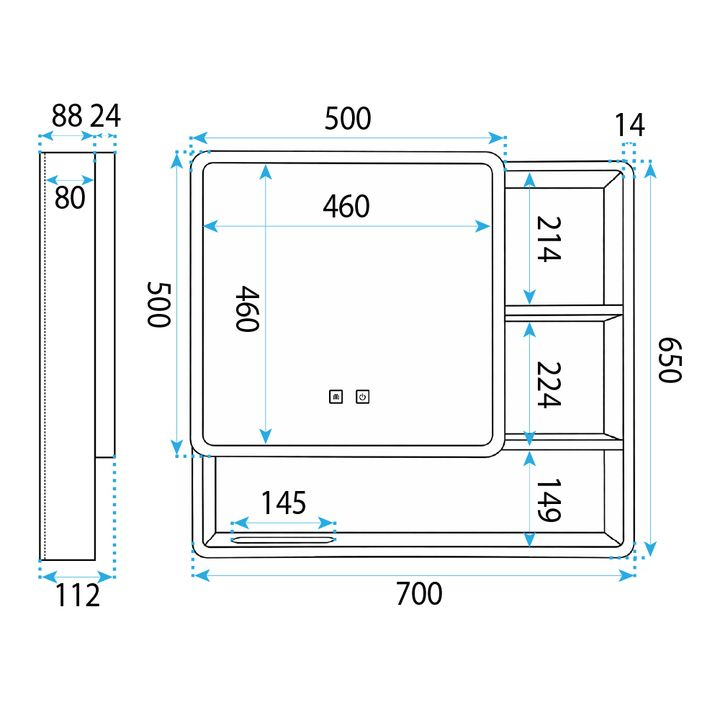 Zrcadlová skříňka s LED osvětlením M1016-70 70x65