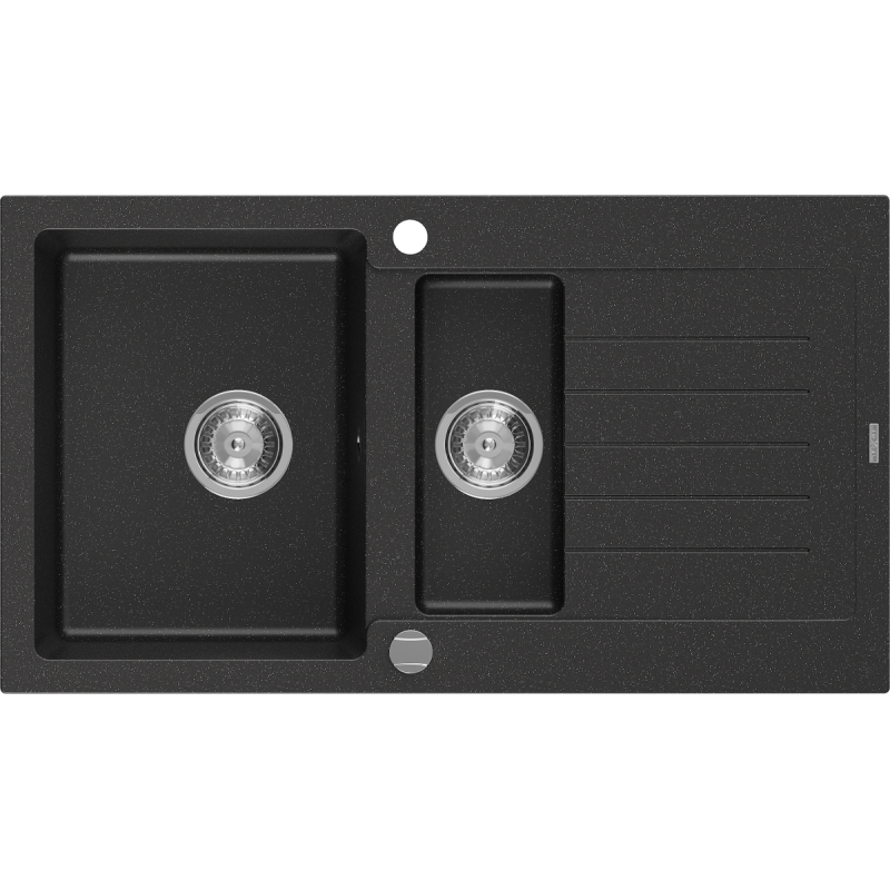 Žulový dřez Mexen Matias 1,5 dřezu s odkapávačem 900 x 505 mm, černá/stříbrná metalíza, chromovaný sifon - 6502901505-73